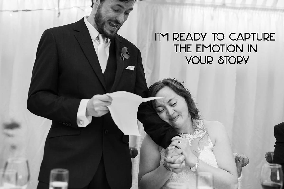 I specialise in telling your wedding day story - the hugs, the kisses, the smiles, the laughter and all the moments that show the LIFE from your day. Weddings are about people - you and your guests so I’m there to capture it, NOT to dictate to you what to do! I can direct you if you want guidance - I’ve been to hundreds of weddings so do ask if you want a pointer or two! I don’t get you posing awkwardly, instead we have fun and create photographs with LIFE in them!